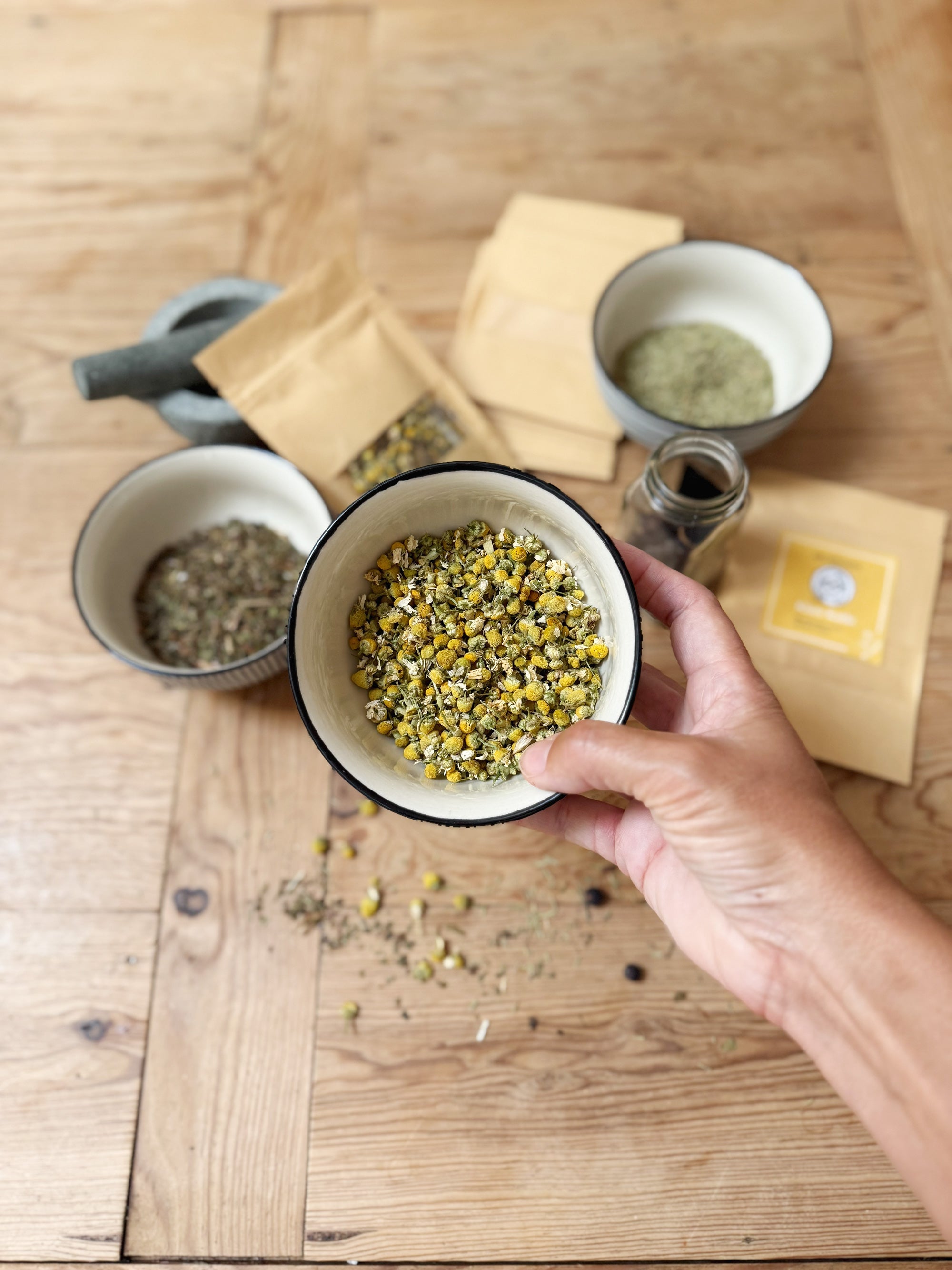 In jeder unserer Mischungen steckt ein Stück Erde, Sonne und Zeit. Wir mischen in kleinen Chargen, mit Achtsamkeit und dem Wissen um die Wirkung jeder Pflanze.